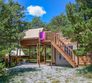 Glamping verblijf van een nacht, een weekend of een hele week voor universele vakanties midden in de natuur in het Regionale Natuurpark van de Baronnies Provençales.